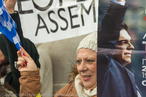 A large crowd filled the space in front of the National Gallery for a rally in support of Syriza and the newly elected government. Speakers praised the Greek people's struggle against austerity and saw it as a model for the rest of Europe.
