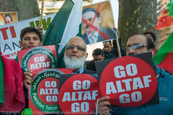 Imran Khan's PTI party protested at Downing St for the UK government to act against Altaf Hussain, founder of the rival MQM party, granted UK asylum in 1992. The say his speeches incite violence in Pakistan and he is implicated in various crimes both there and in London.