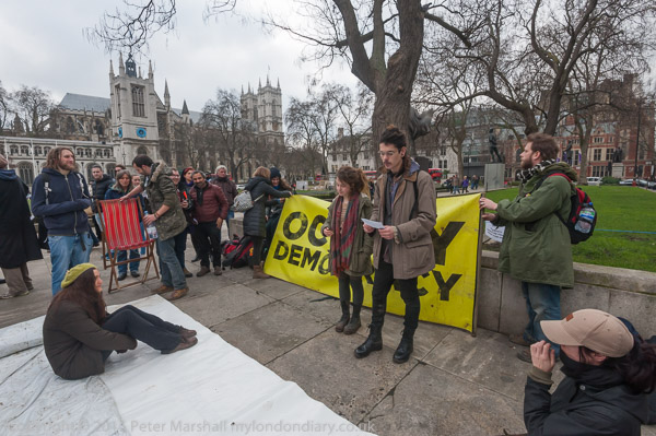 The coffin 'UK Democracy R.I.P. Killed by Corporate Billionaires' police arrested with Donnachadh McCarthy