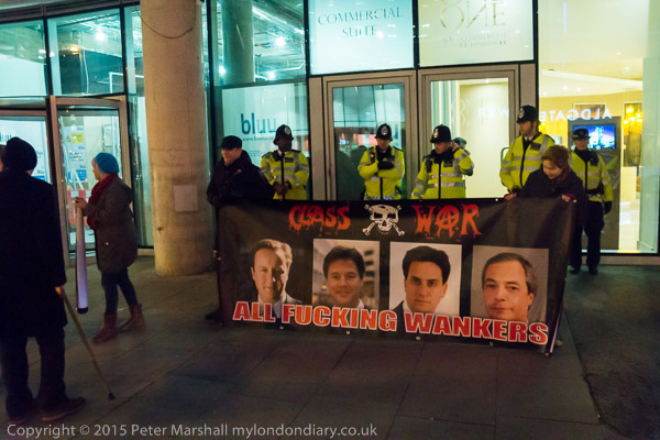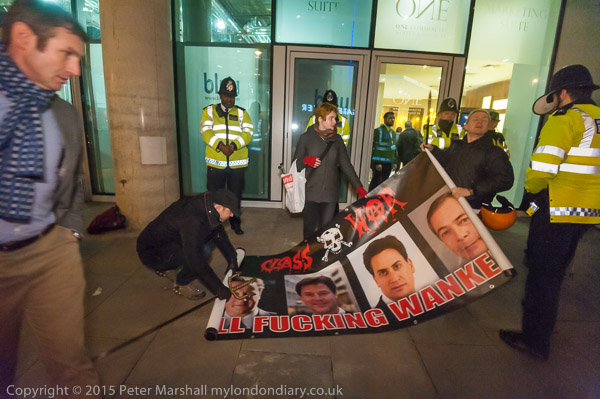 Class War brought out the 'Political Leaders' banner in front of the 'rich' door