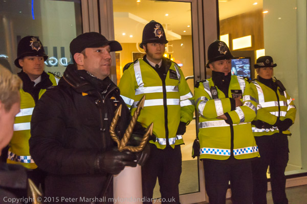 The banner stays on display while the police try to persuade someone they are offended. Most people are amused