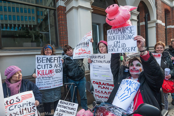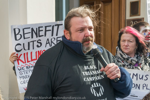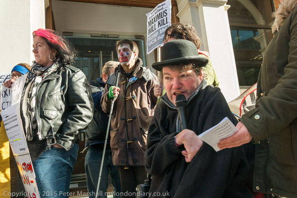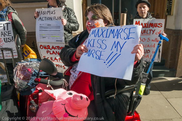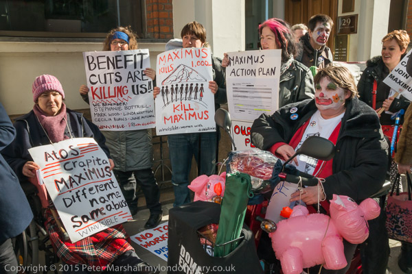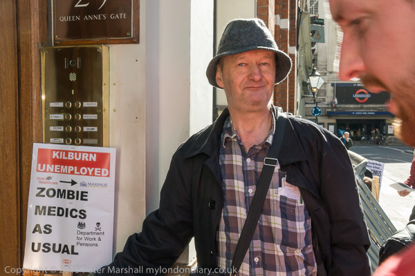 Kilburn Unemployed at the doorway to Maximus in Queen Anne's gate
