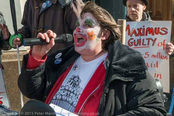 Paula Peters was one of a number of protesters withfaces painted for the circus-themed protest