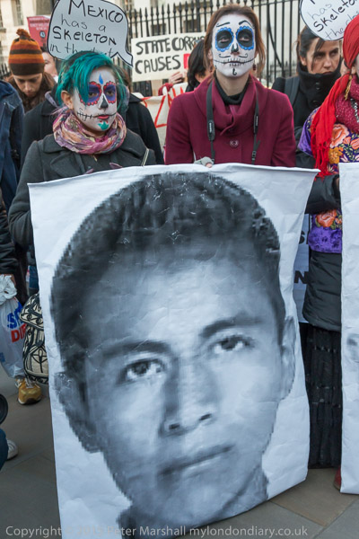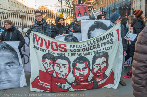 and giant photographs of some of the 43 missing Ayotzinapa students.