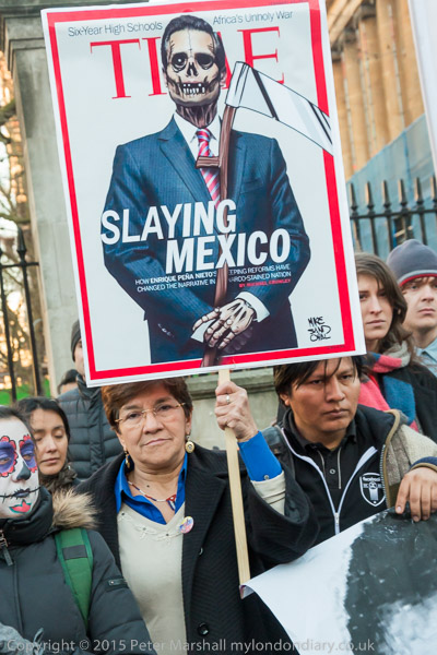 The protesters hold Mexican President Peña Nieto responsible for 'Slaying Mexico' - well over 100,000 killings