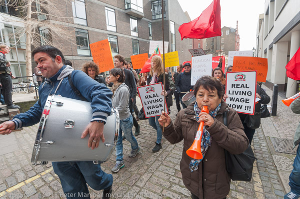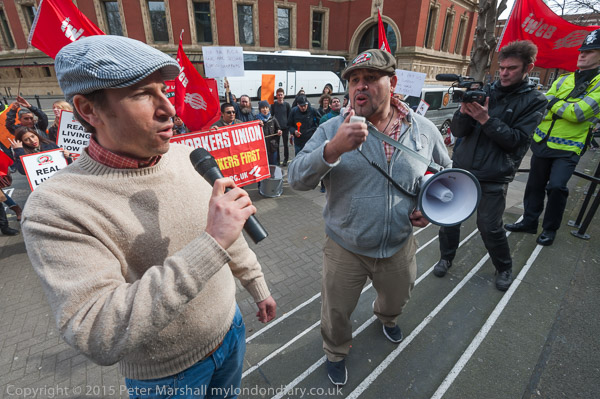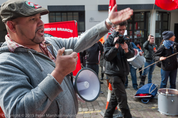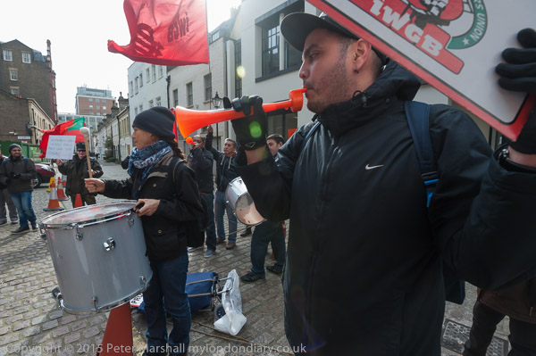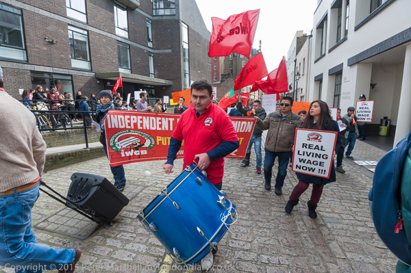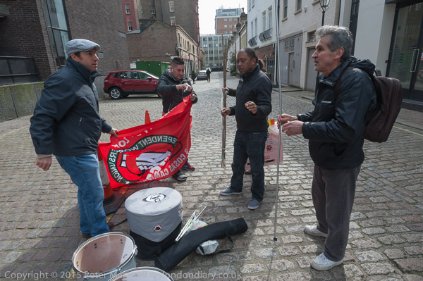 Jason Moyer-Lee arrives with banners, flags drums and support