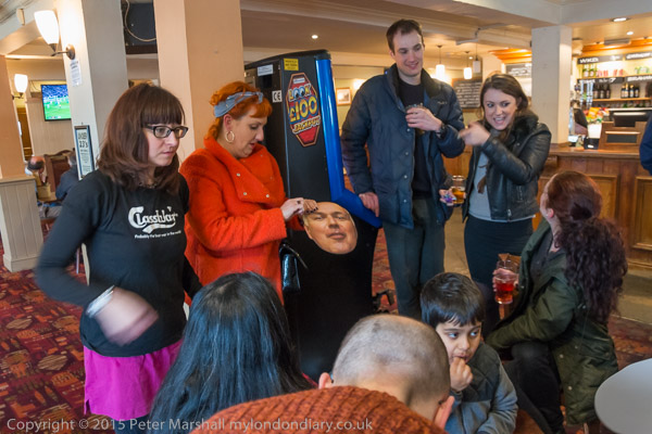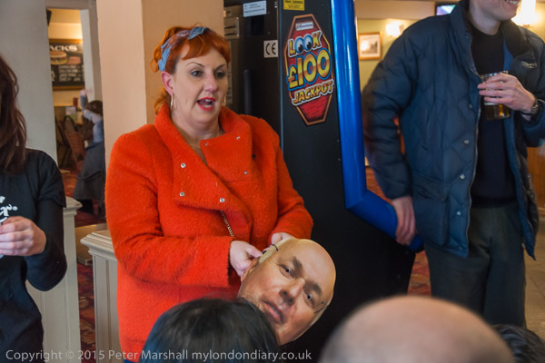Jane Nicholl brings out the Iain Duncan Smith masks. Perhaps appropriately they seem an odd colour