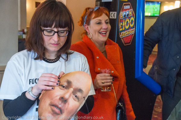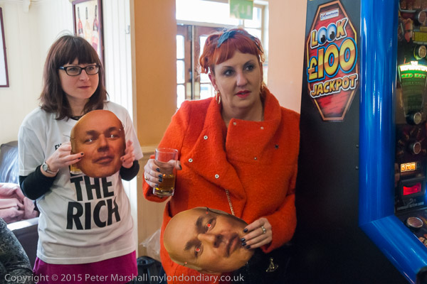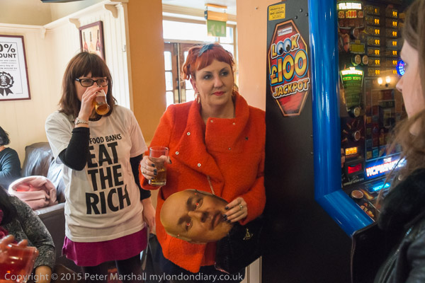 People drink a toast to  Class War candidate for Chingford & Woodford Green Lisa McKenzie