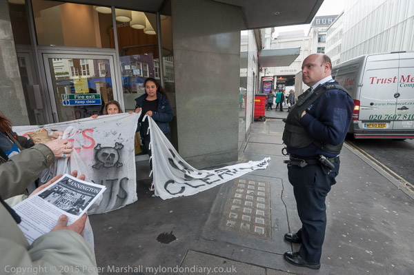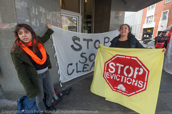 Young protesters hand out flyers about Annington Homes and Barnet Council and the evictions and