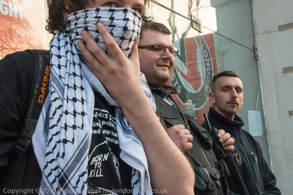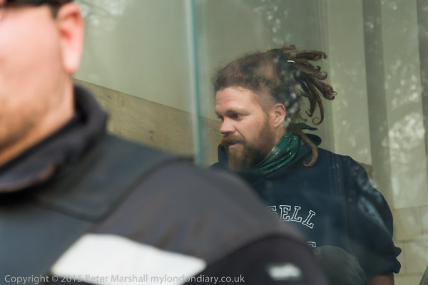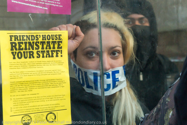 ![]() Men dressed as security guards but without any visible ID blocking the doors to the occupied space ![]() ![]() A woman with her mouth closed by Police tape ![]() ![]() Protesters came to the door but the men told them if they came out they would not let them go back in ![]() The Private Security Industry Act 2001 made it a criminal offence for security guards not to have their SIA licence visible ![]() when facing the public, punishable by up to 6 months in prison - nd/or a fine of up to £5,000. ![]() C ![]() Class War banner outside the squat ![]() Ocuppiers on the balcony |