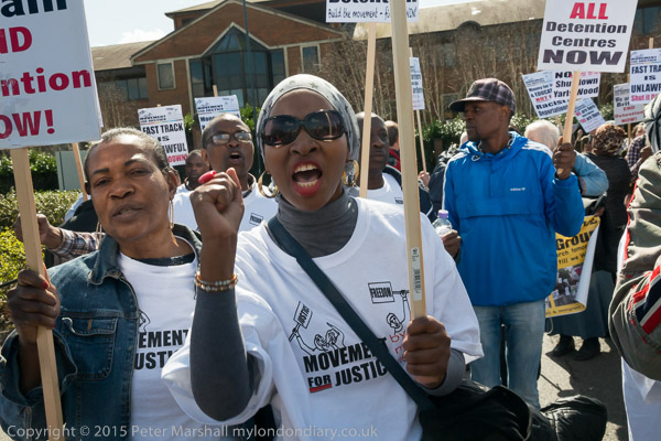 and get out placards and banners. The protest is organised by Movement for Justice