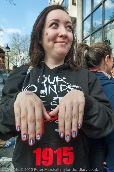 Nails in Armenina colours with the dates 1915-2015 to mark the centenary of the Armenian genocide
