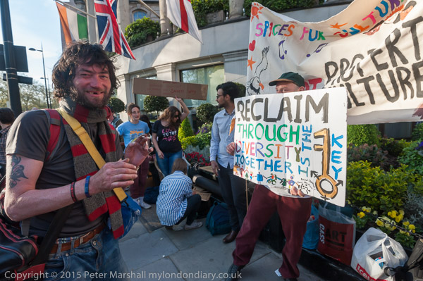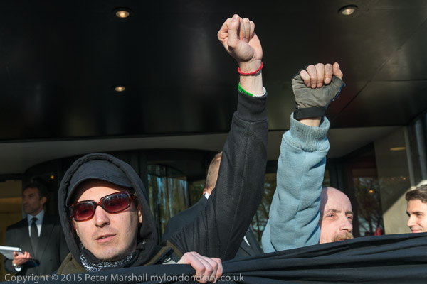 Protesters outside the main entrance to the hotel where the 'Property Awards' were being held