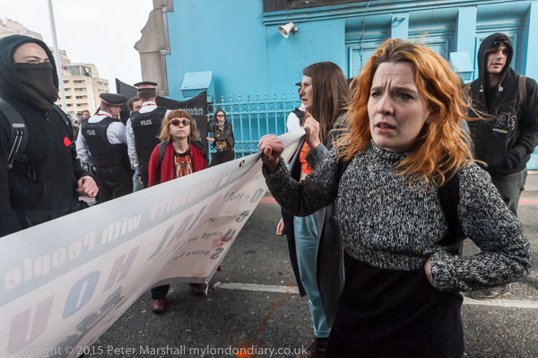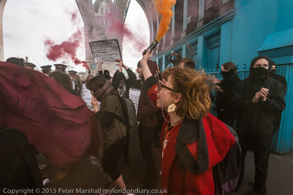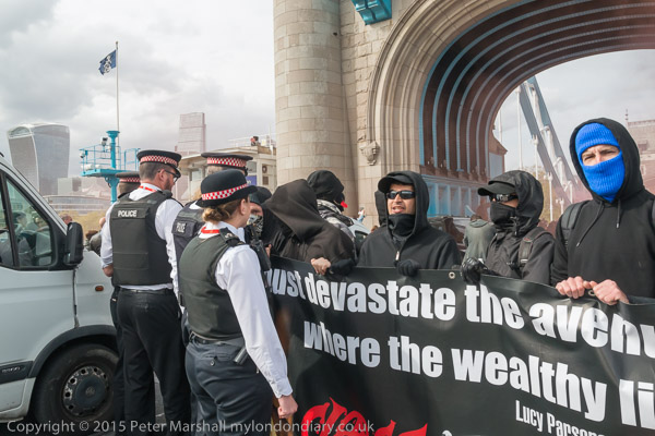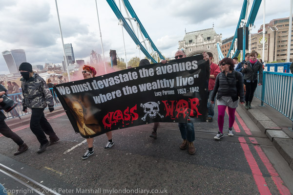 Class War and other anarchists had gathered close to the north end of Tower Bridge and marched down the approach road