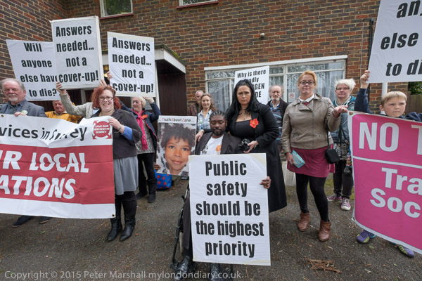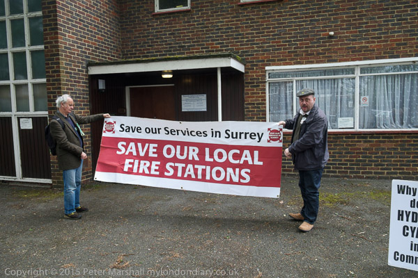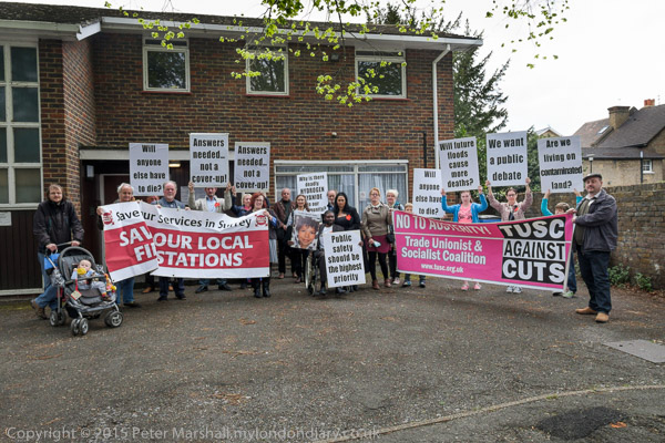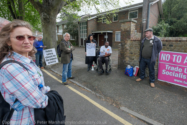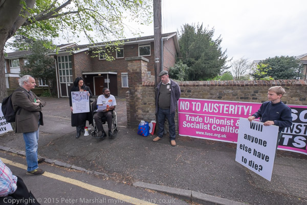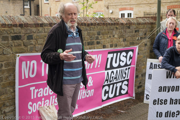 Stand Up for Spelthorne protest at Conservative Party constituency HQ in Staines, Middx organised by TUSC against Cuts.