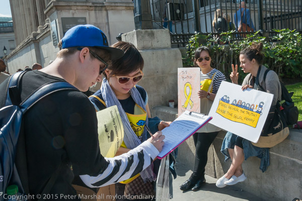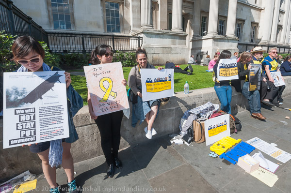 ![]() The vigil takes place every month in Trafalgar Square. Sometimes there is a rather larger group than this ![]() Most of the protesters are Korean or have family connections to Korea |