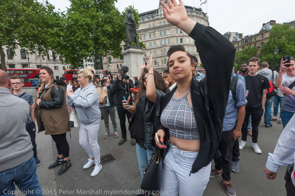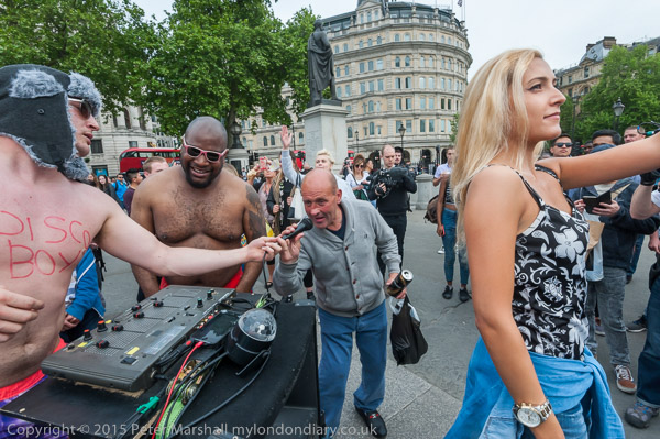 Loud disco music came to Trafalgar Square - and one man jumped into the fountain to dance to it
