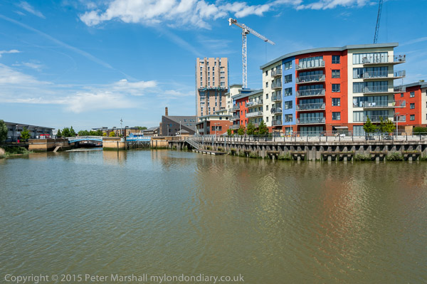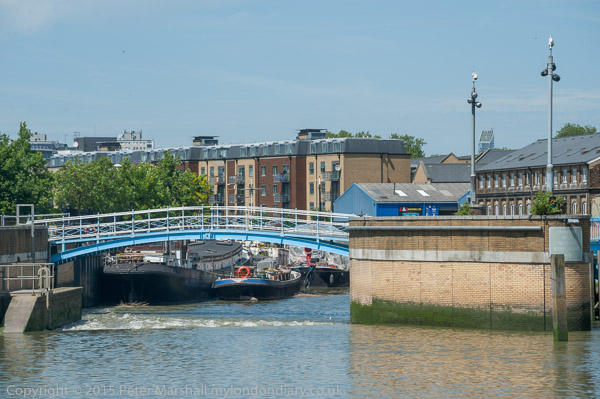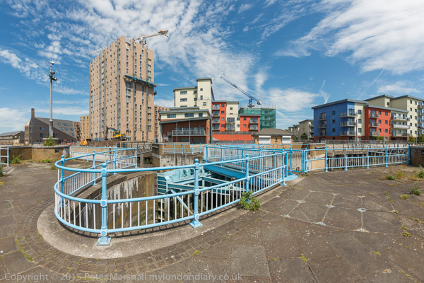 The Barking Barrage, a half tide lock that stops the river above it drying out at low tide