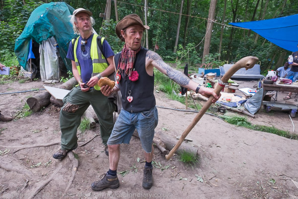 Phoenix, one of the orginal occupiers of the eco village in June 2012 - when it was higher on the hill - and Vinny