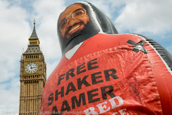 The inflatable Shaker Aamer for the 'We Stand with Shaker' campaign