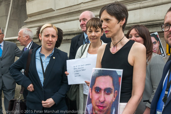 and Stewart McDonald MP outside Downing St with letter to David Cameron and picture of jailed blogger Raif Badawi