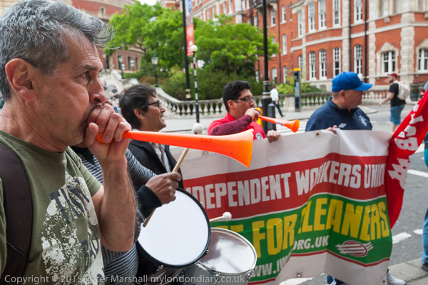 They get out the Independent Workers of Great Britain (IWGB) banner