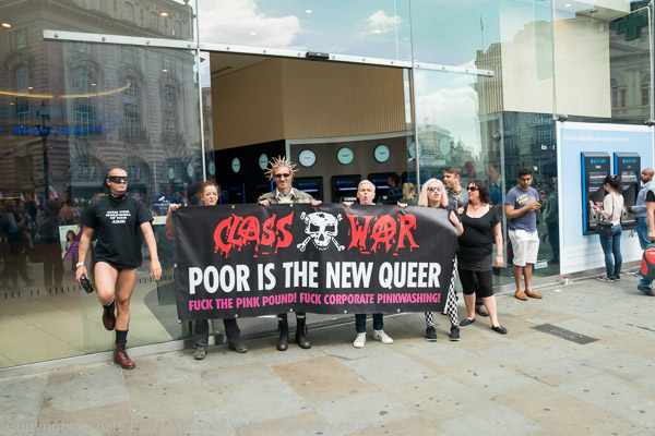 Protest outside Barclays with the 'Poor is the new Queer' banner