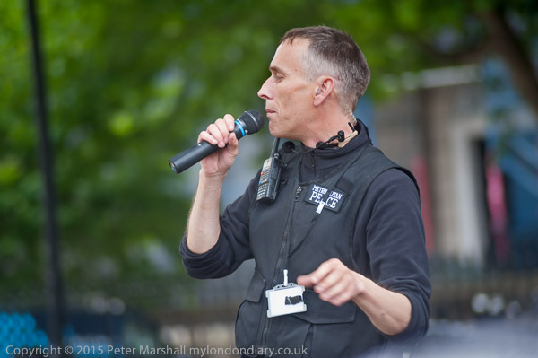Anti-child abuse campaigner 'Joe Public', wearing a 'Metropolitan Peace' uniform.''The Charity Establisjh
