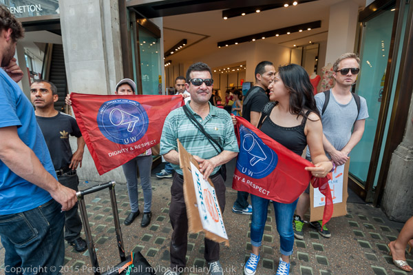 UVW flags with the message 'Dignity & Respect' for how workers should be treated