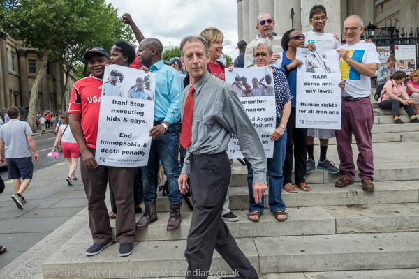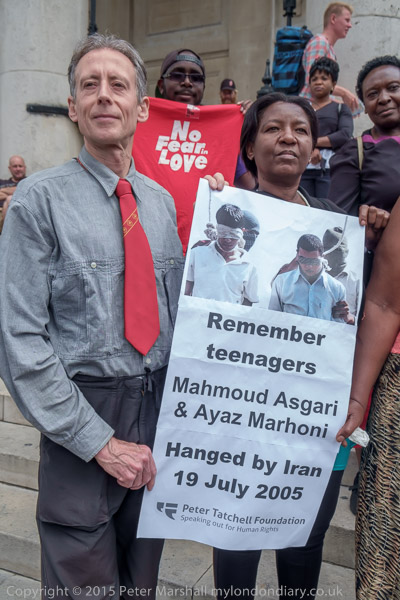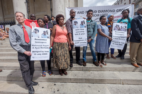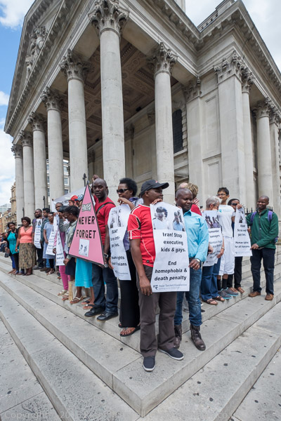 The protest was organised by the Peter Tatchell Foundation and the Out and Proud Diamond Group (African LGBTi)