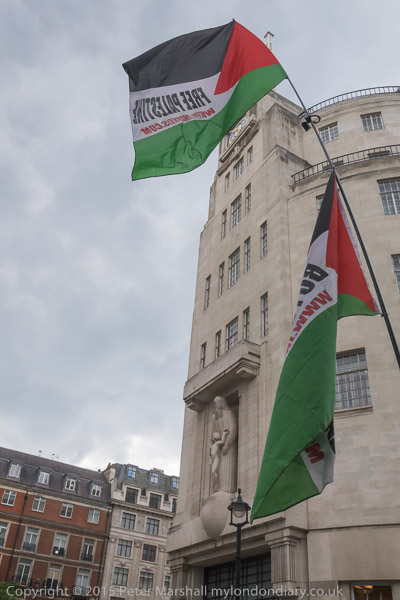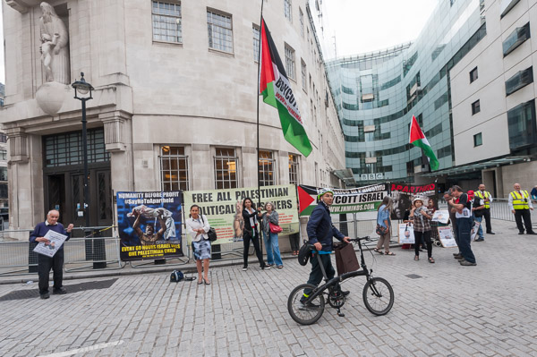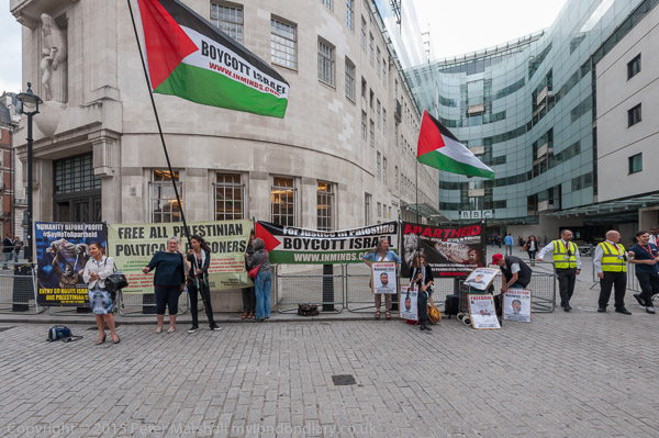 BBC Security calm down the situation after a man (wearing cap in picture) came to argue with the protesters