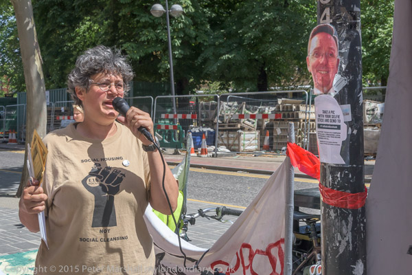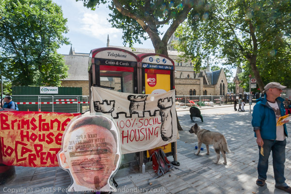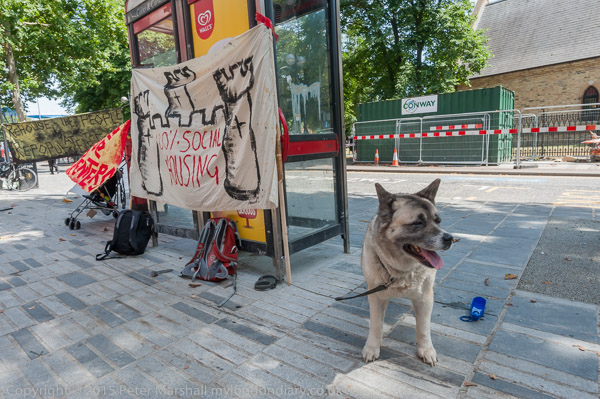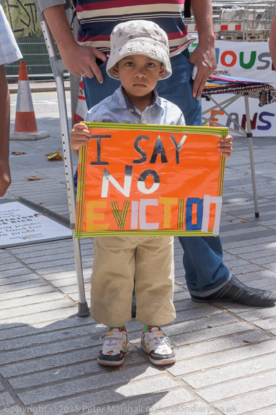 Their banner says 'No Social Cleansing' and 'Stop forcing people away from their support networks',