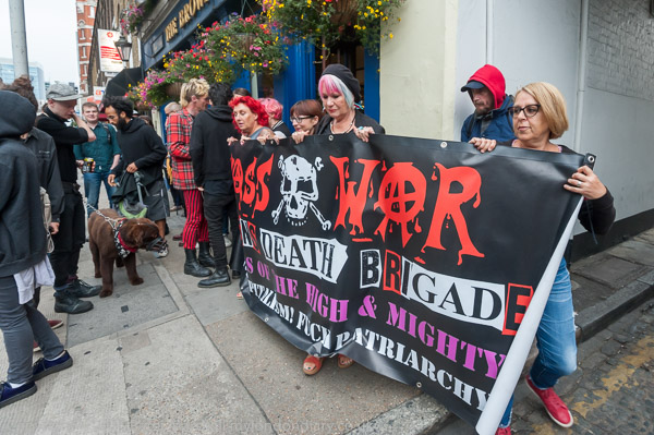 Class War make their opinion of the shop featuring lurid displays of extreme violence against women clear