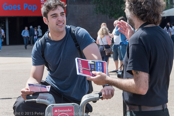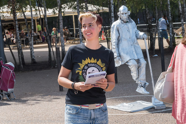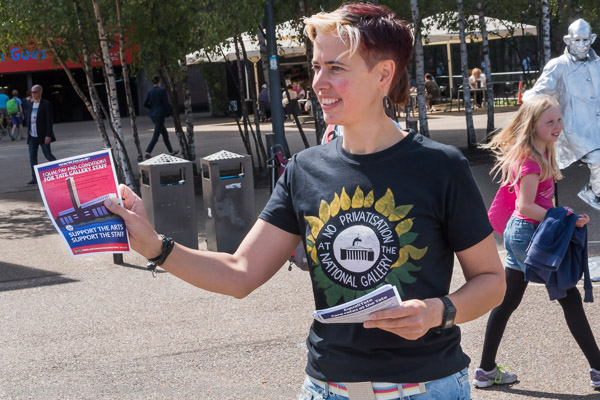 PCS NEC liaison officer and President of the Culture Sector., Clara Paillard was there handing out the flyers