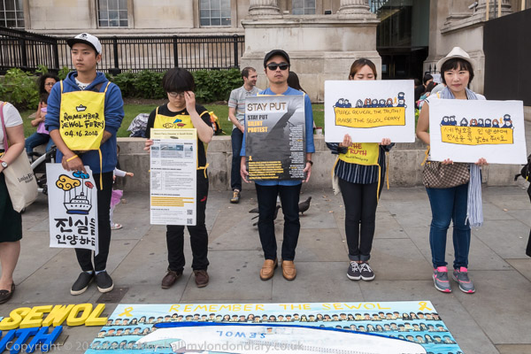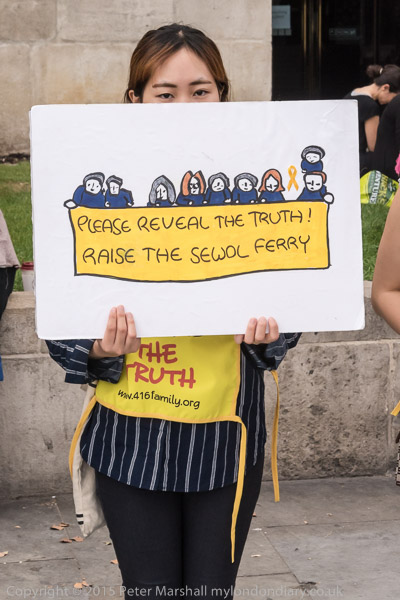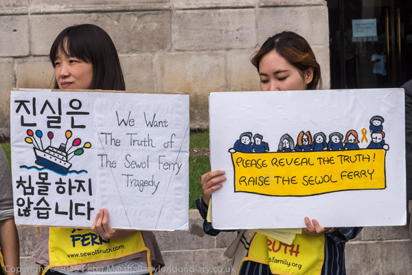 The protesters want a full inquiry by the Korean government, and special anti-disaster regulations, as well as