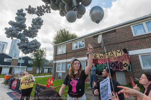 Two years after the Focus E15 campaing started and year since they occupied 4 flats on the Carpenters Estate which had laid empty since 2004 despite a huge housing shortage in the borough, Focus E15 held a rally outside the flats. 400 homes on the estate are still empty despite their action shaming Newham into letting a few properties.