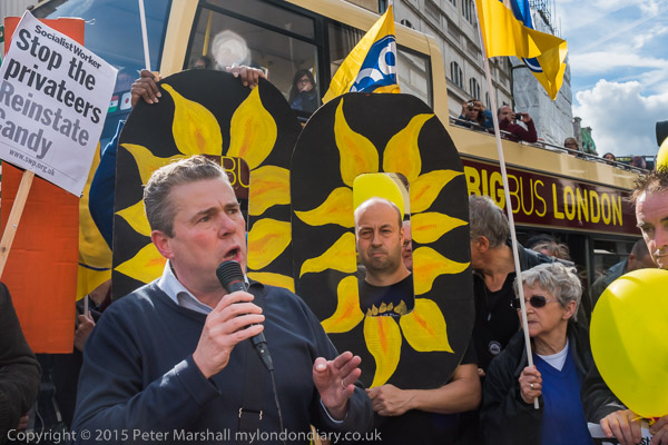 General Secretary Mark Serwotka speaks at the rally outside the