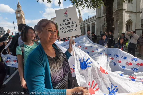 Deaf and disabled people and supporters protested the cutting of the DWP's Access to Work scheme which enables them to work on an equal basis to non-disabled people. They want to work and have careers, but say the Government won't let them.