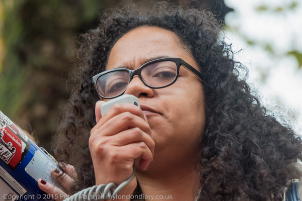 Antonia Bright of Movement for Justice talks about the UK's racist immigration policies and invites students to protest at Yarls Wood