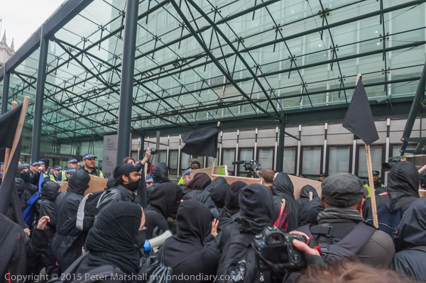 Behind the Book bloc others pushed towards the police closing the entrance to th BIS