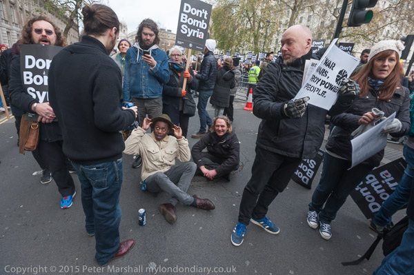 People moved on to the road and stood there blocking it. Police tried to persuade them to move with little success