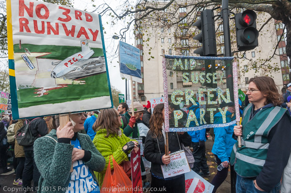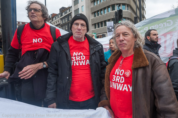 No Third Runway protesters had brought t-shirts and a sort of plane. John Stewart (centre) and Neil Keveren (right)