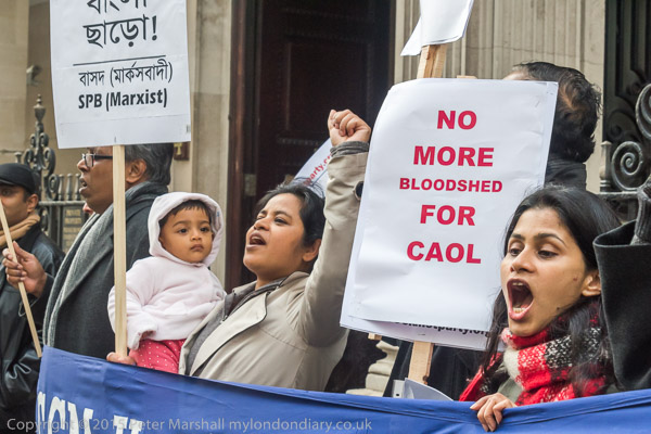 shout for GCM to abandon all plans to mine at Phulbari outside the AGM venueProtesters gathered outside the AGM of London-based multinational Global Coal Management Resources Plc to present them a notice of closure for the opencast Phulbari mine which would displace more than 130,000 farming families and many tribal people.