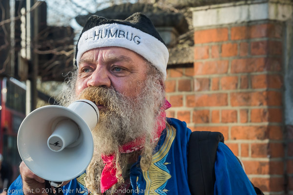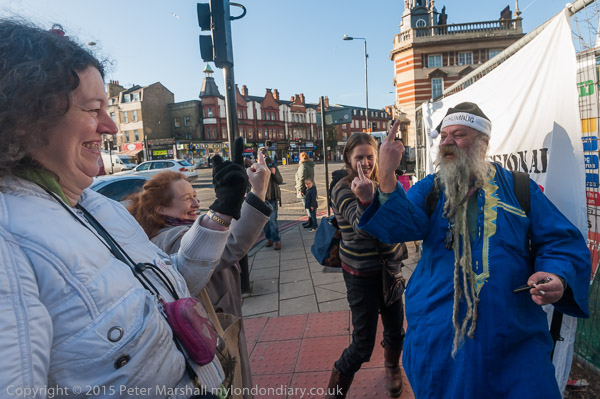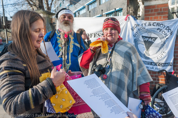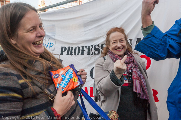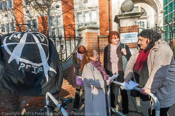 The protesters walk to meet others already outside the Southwark 'Hub' at Thames Reach Employment Academy,