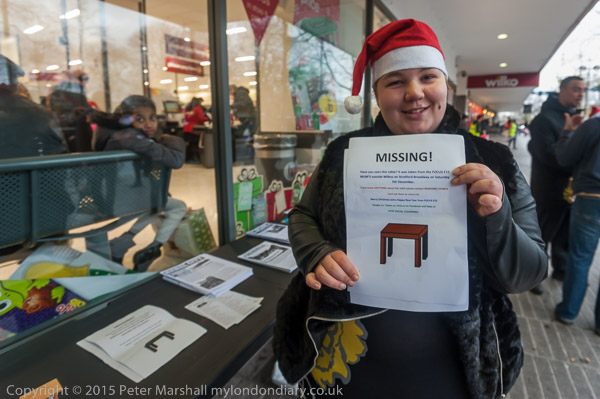 including one very small table standing on a larger table. Newham Council have the table that was taken