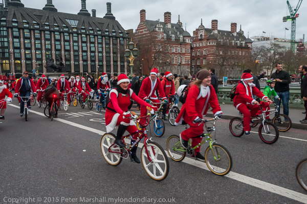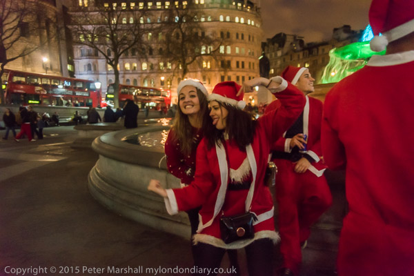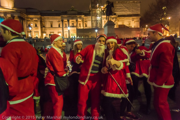 Many of those who took part in the annual Santacon crawl around London ended up in Trafalgar Square