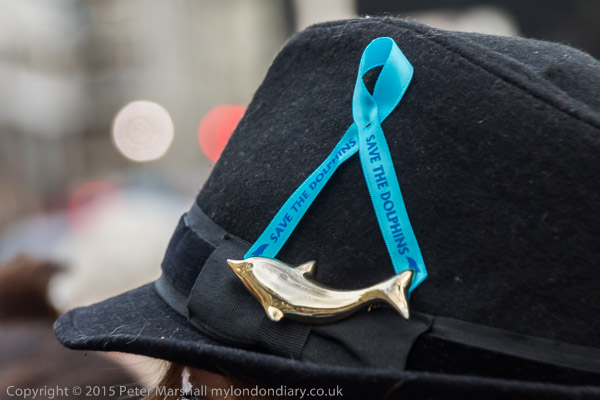Another dolphin on a hat, with the message 'Save the dolphins'