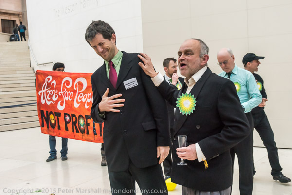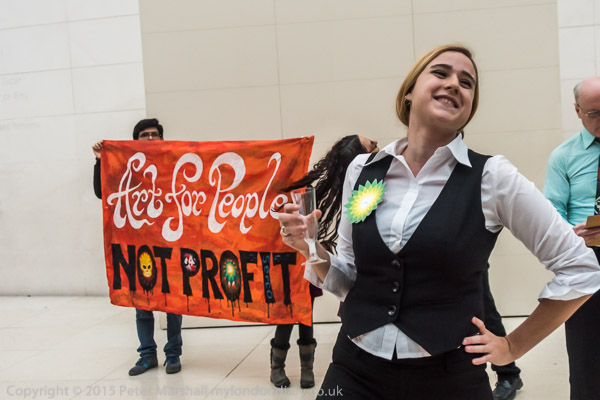 or as the protesters might put it, 'greenwashing' their very dirty, oily, reputation