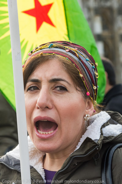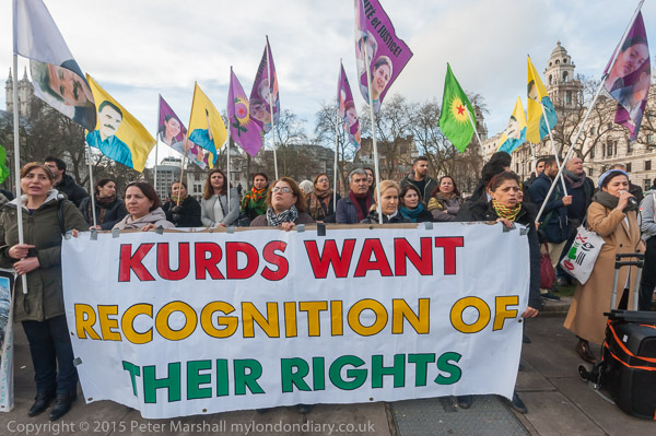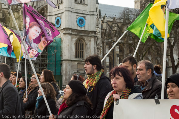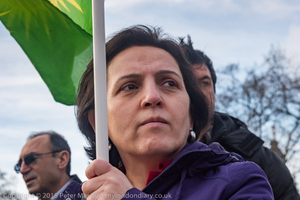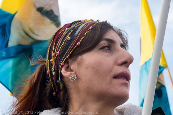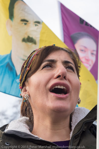 Kurdistan flags, flags with an image of imprisoned PKK leader Adbullah Ocalan and of three Kurdish Women politicians