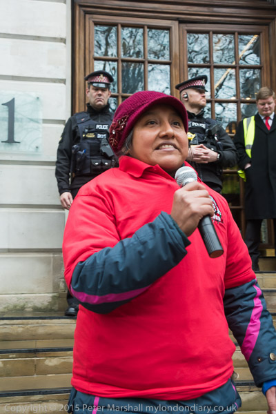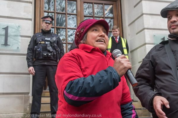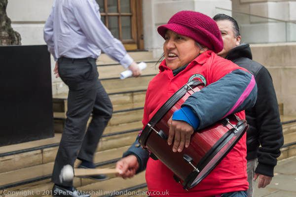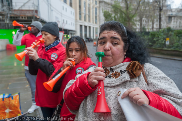 The protesters start to walk around in a large circle on the pavement outside 1 Finsbury Circus